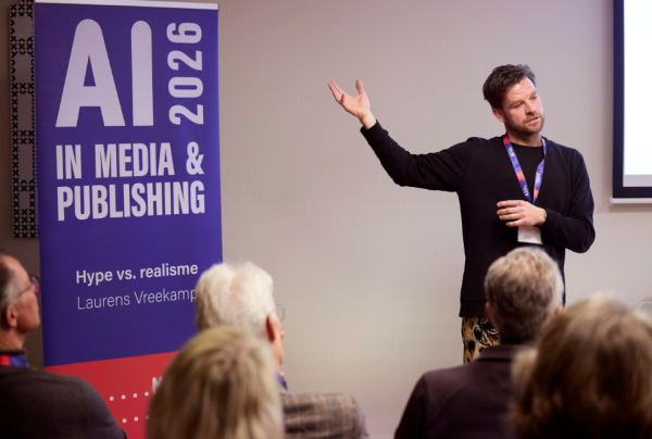 Hoe benut je AI zonder je merk, je creatieve kwaliteit en je rechtspositie te ondermijnen? Die vraag stond centraal tijdens AI in Media & Publishing 2026 op 27 januari 2026 in theater Meervaart in Amsterdam. Onder leiding van moderator Ben van der Burg gingen professionals uit publishing, marketing en media in gesprek met internationale en Nederlandse experts over leiderschap, ethiek, juridische kaders, werkprocessen, conversational AI en de realiteit achter de hype.